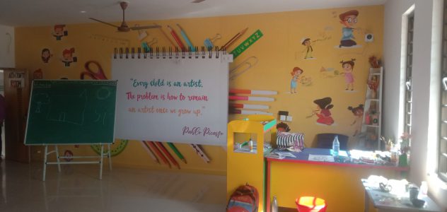 It’s a colorful world for express child’s creativity. A separate drawing room for art and craft education